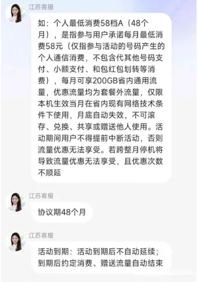 感谢网友投稿,反馈是四年活动,每月满足58消费,可以领200G省内包。上车联系10086在线客服。