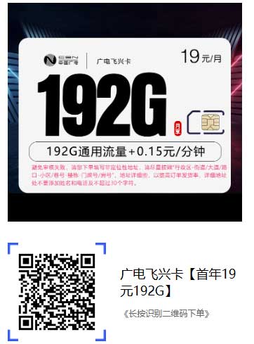 广电飞兴卡 | 首年19元享192G通用流量!首月0元体验