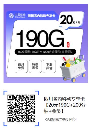四川学生党速冲!20元月享930G流量+200分钟+视频会员