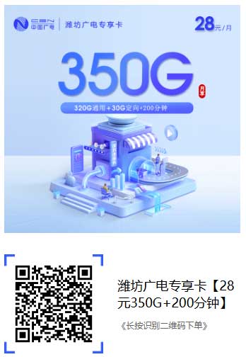 还在为流量不够用、话费太贵而烦恼?潍坊本地用户有福了!中国广电重磅推出潍坊专享大流量卡,月租仅28元,即可畅享350GB超大流量 + 200分钟全国通话!激活时一次性充值100元,还能额外叠加海量流量,性价比爆表!